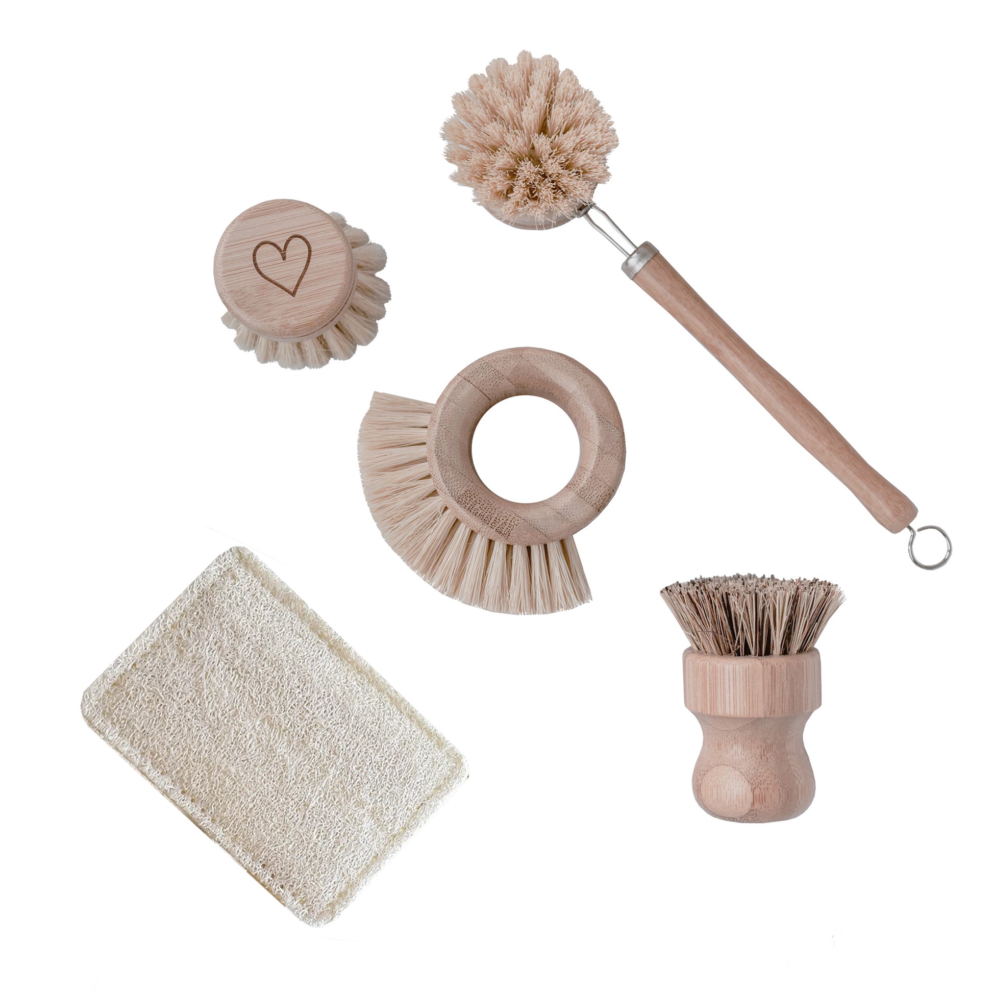 6er Set: Spülbürste, Ersatzbürste, Topf und Pfannenbürste , 2 Luffaschwämme