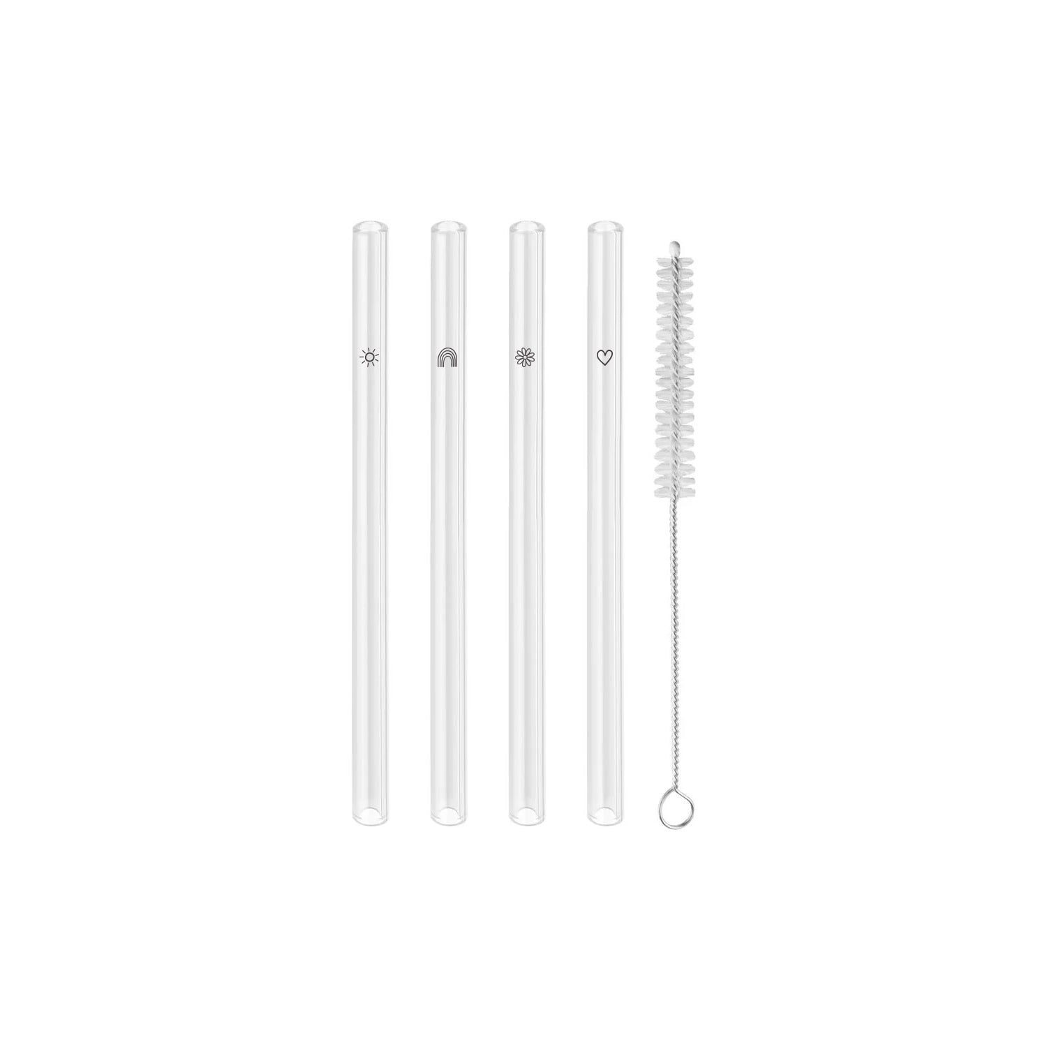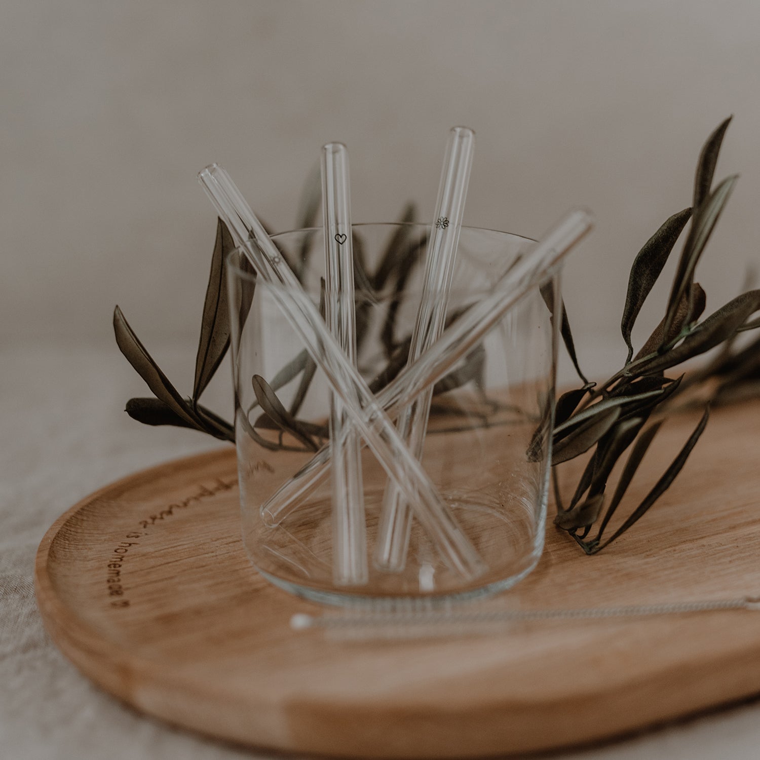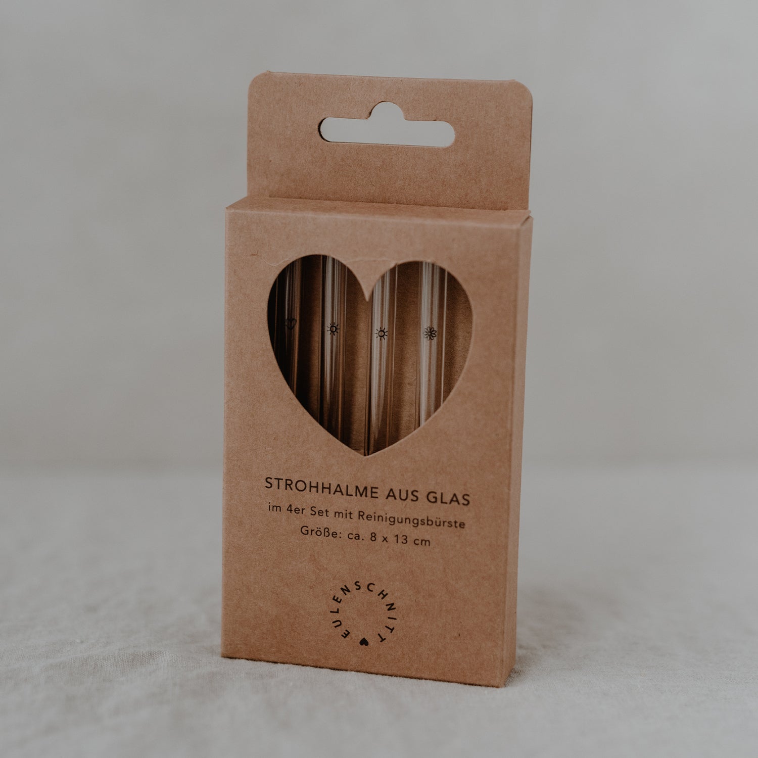 Wunderschöne Strohhalme von Eulenschnitt aus Borosilikatglas mit sommerlichen Prints in schwarz.